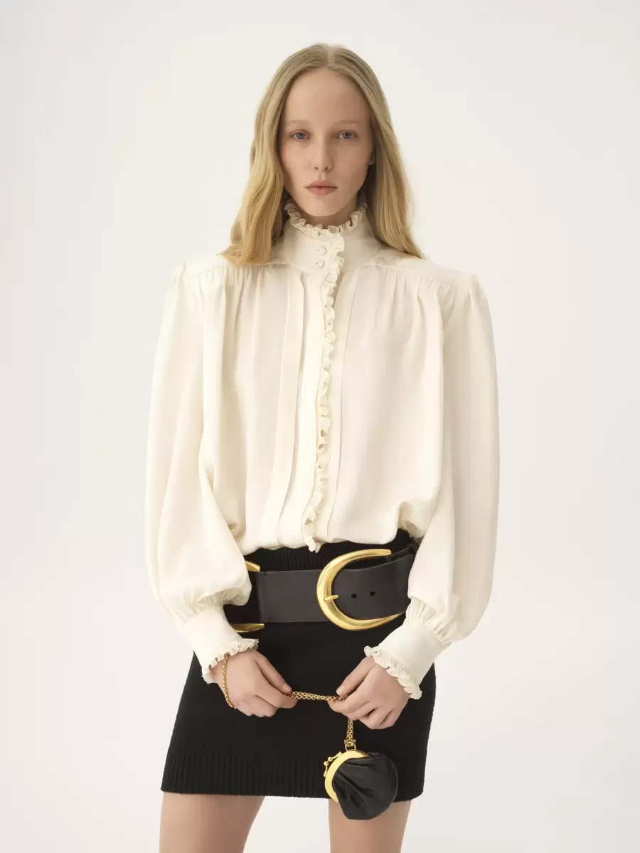 Be the first to review “Oversized ruffled blouse in silk jacquard”