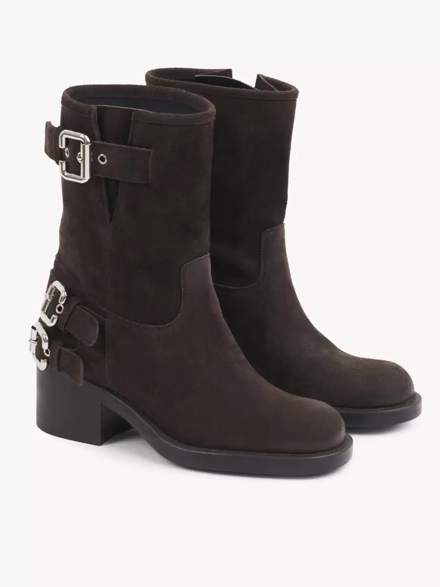 Crafted from suede calfskin, these Dakota ankle boots are inspired by classic biker boots.