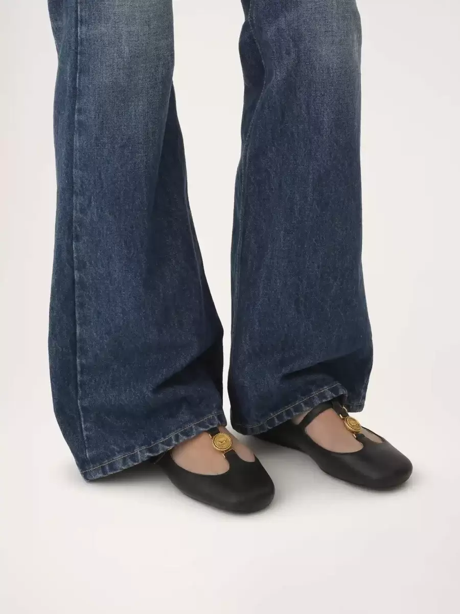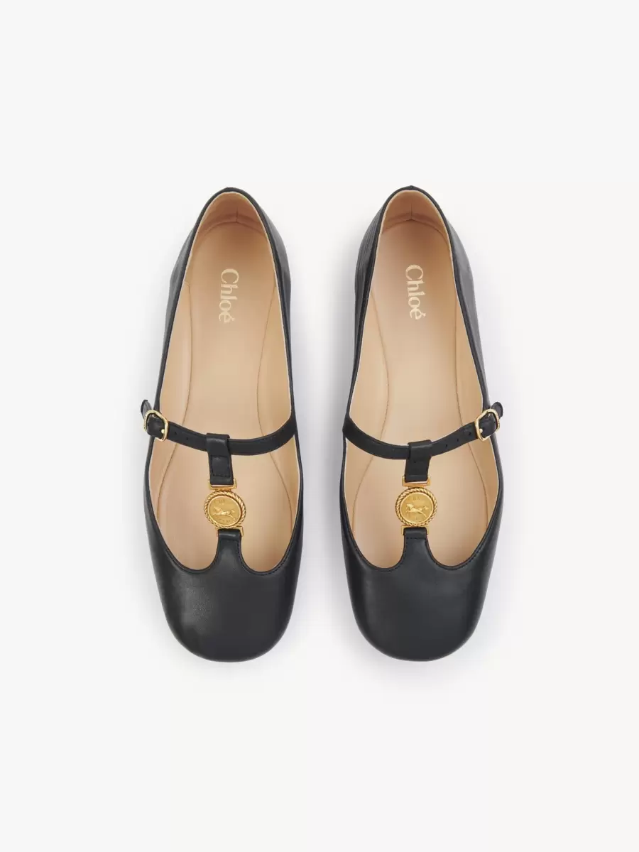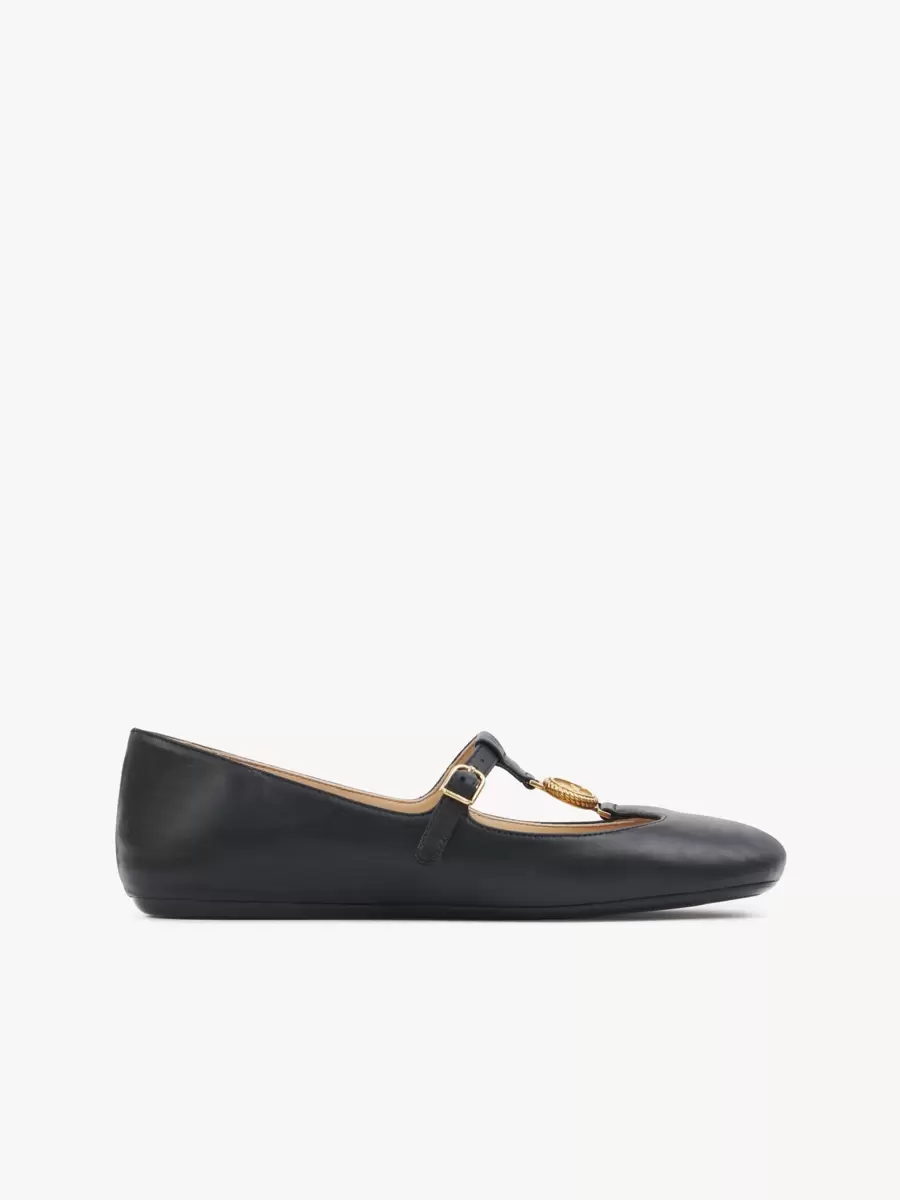 These Leonore ballerinas are crafted from shiny lambskin in a Mary-Jane silhouette with a softly rounded toe and a light and supple rubber sole. The Maison’s signature gold-tone Horse Medal finishes these ballet flats.