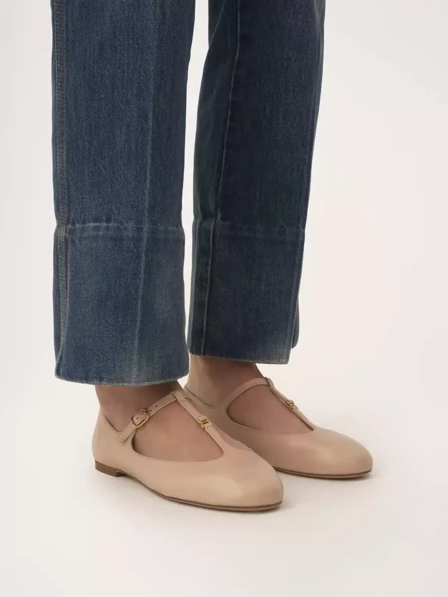 Crafted from nappa lambskin, this revisited Marcie ballerina pairs a Mary Jane silhouette with an almond toe shape.