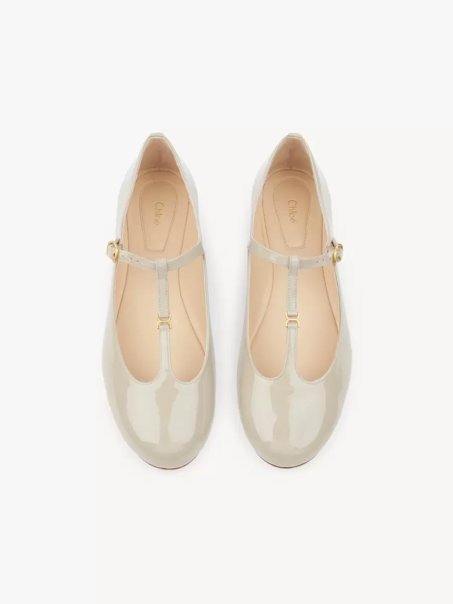 The upper is detailed with Marcie’s gold-tone hardware in miniature while the Chloé-engraved buckle lends a signature finish to these comfortable ballet flats.