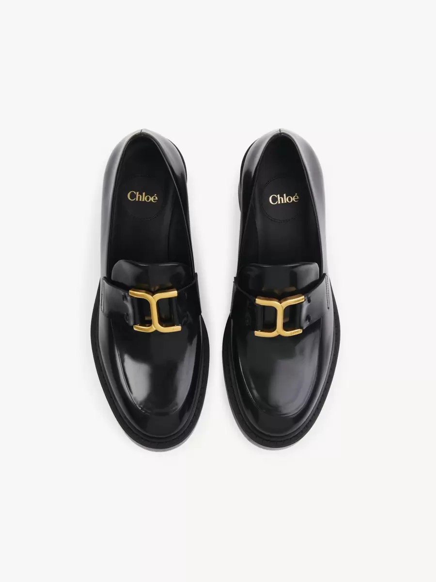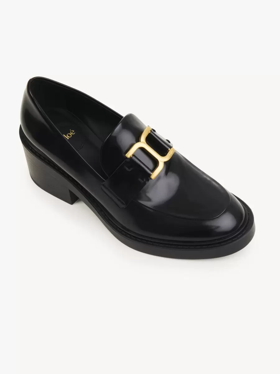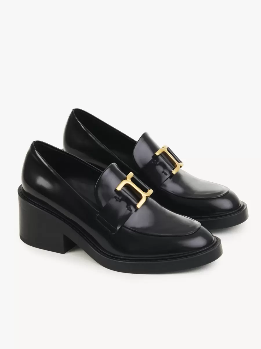 Reinterpreting the classic Marcie style, these shiny calfskin heeled loafers highlight the Maison’s leather know-how.