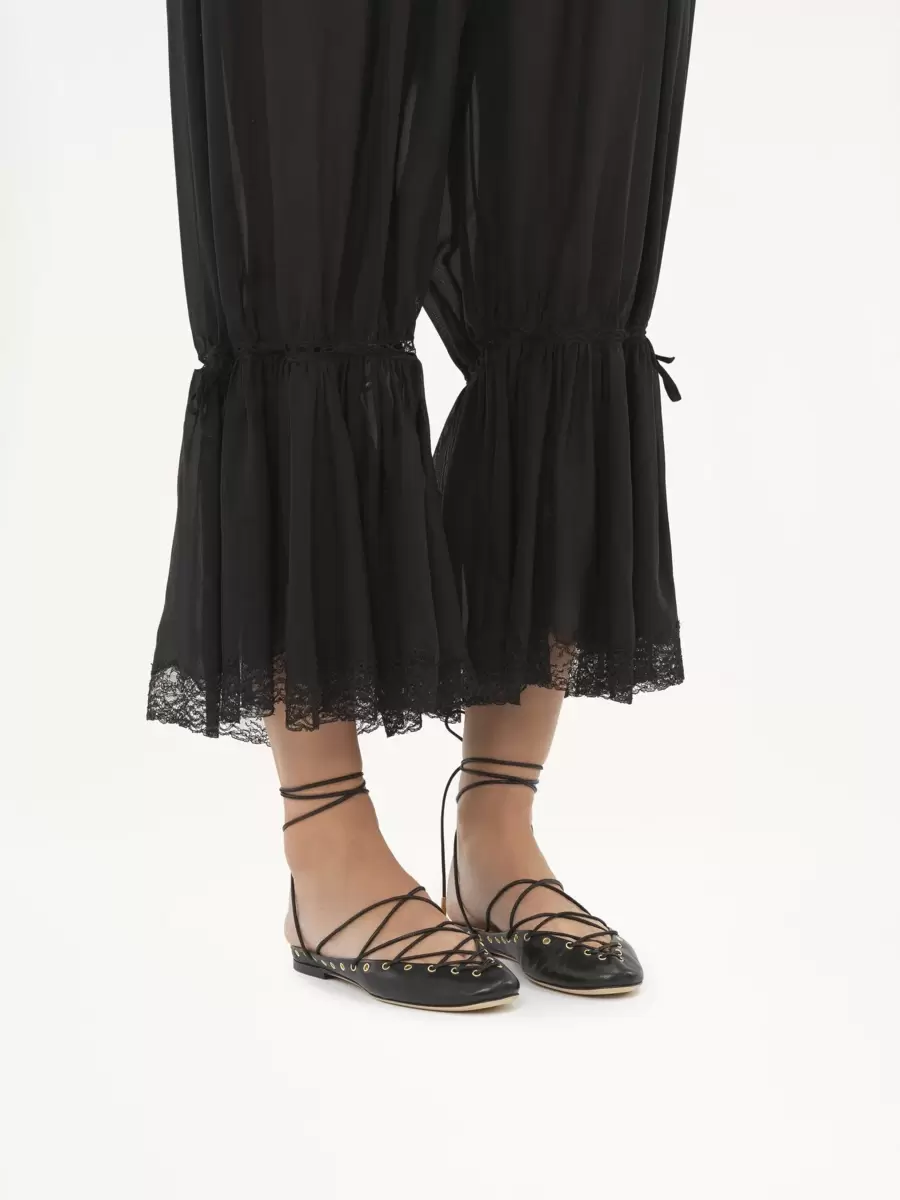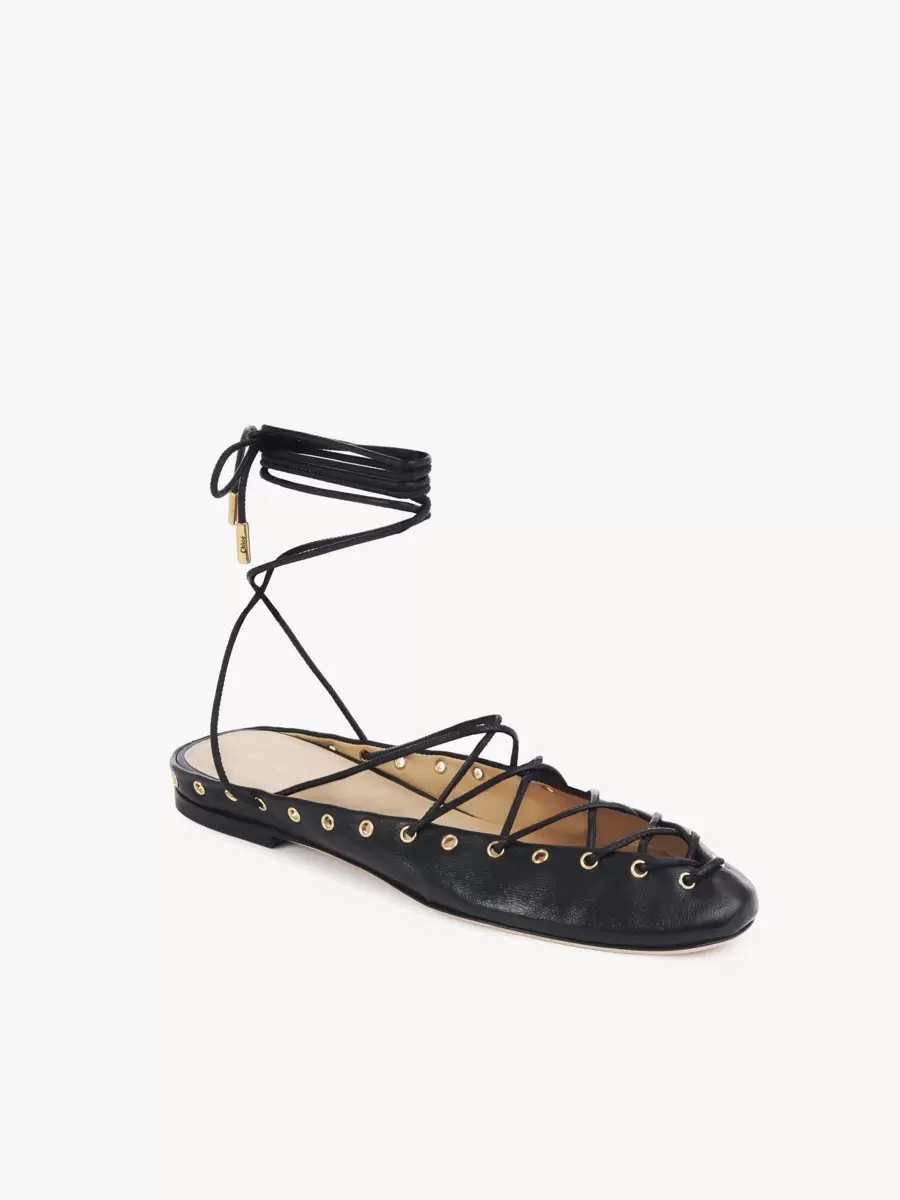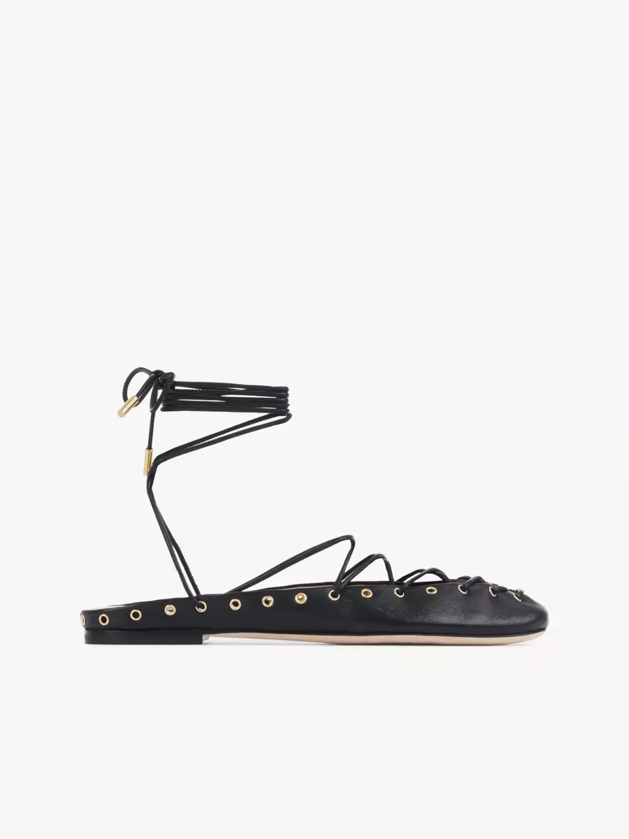 Crafted from nappa lambskin, the Chloé Ghillies ballerinas pair an almond toe shape with an open-back silhouette. Corset-inspired lacing and gold-tone hardware finish these light ballet flats.