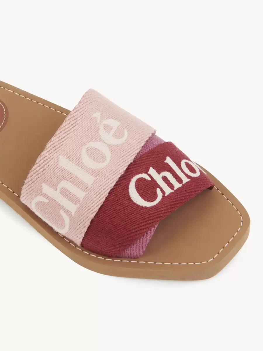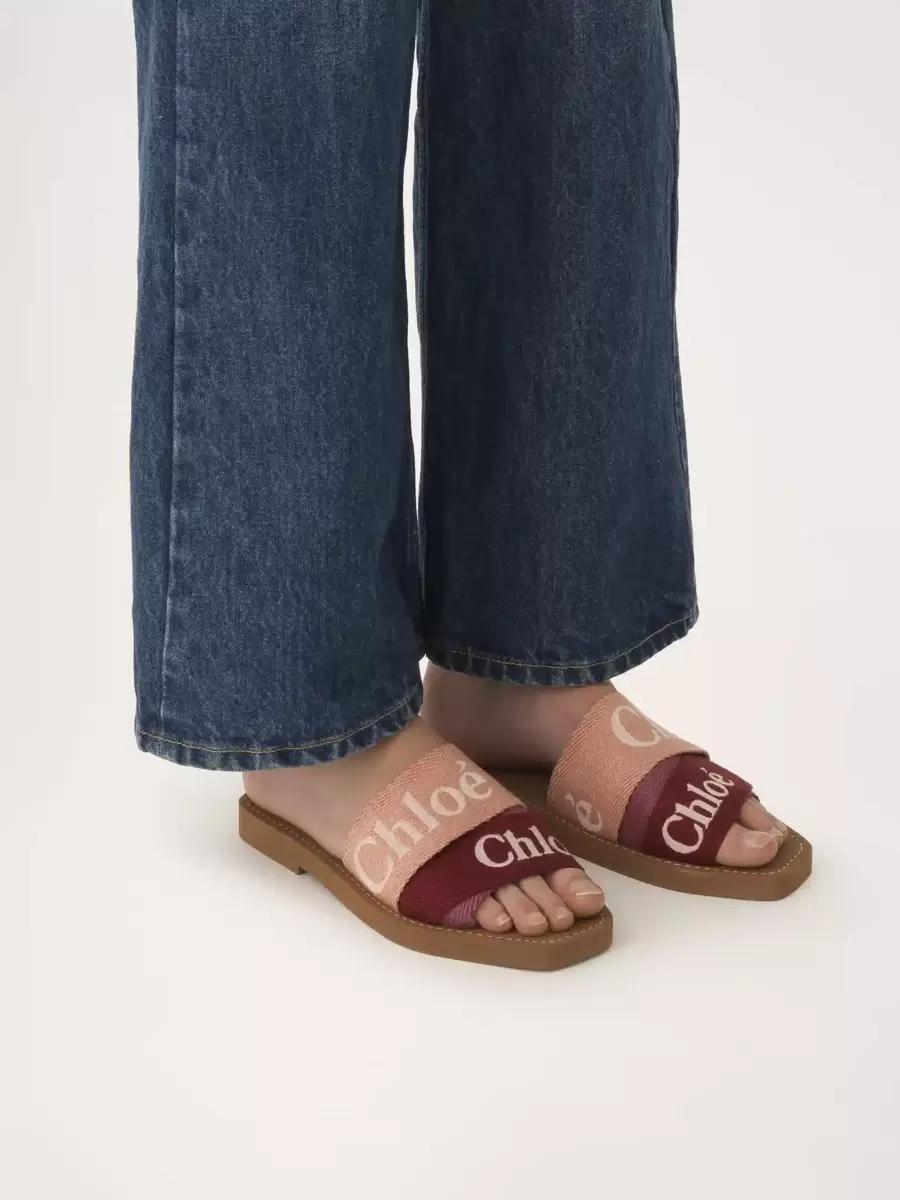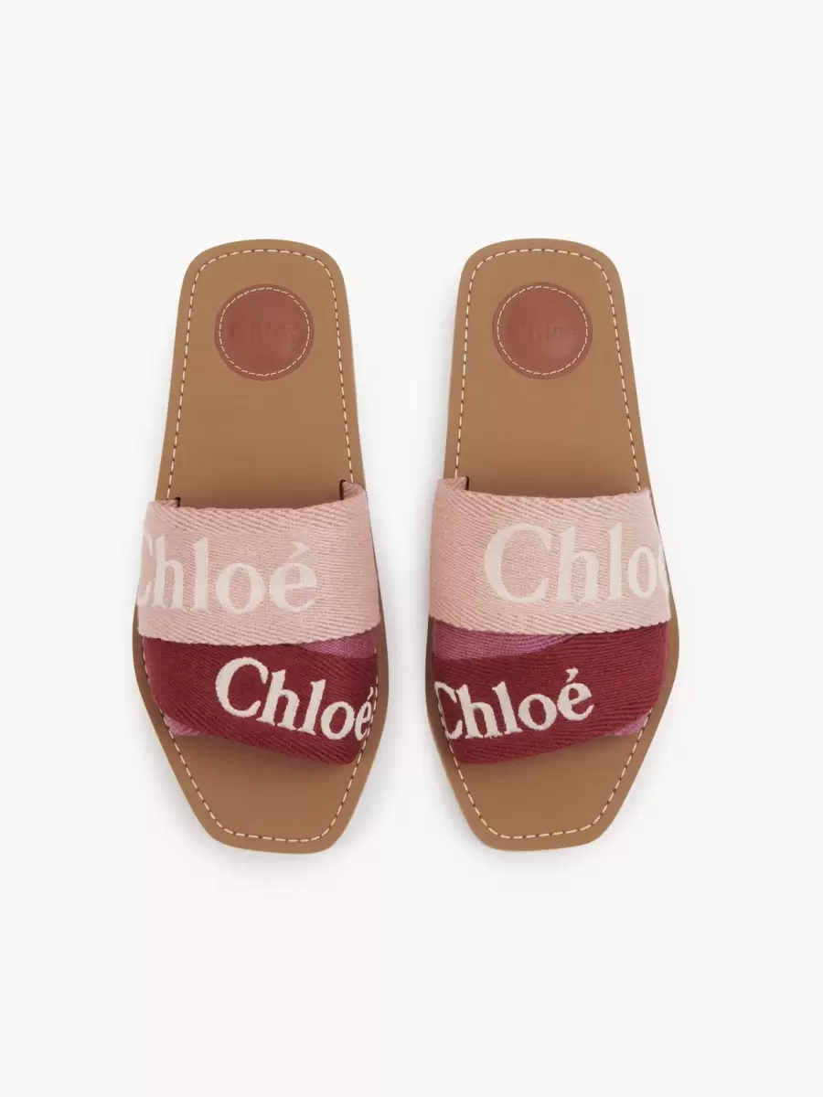 These Woody mules are crafted from different-sized ribbons in lower-impact linen, finished with contrast Chloé logo embroidery.