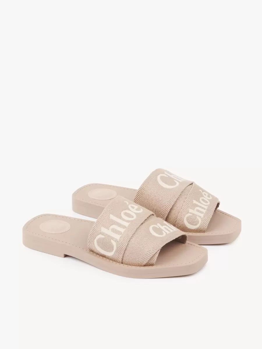 These Woody mules are crafted from different-sized ribbons in lower-impact linen, finished with contrast Chloé logo embroidery.