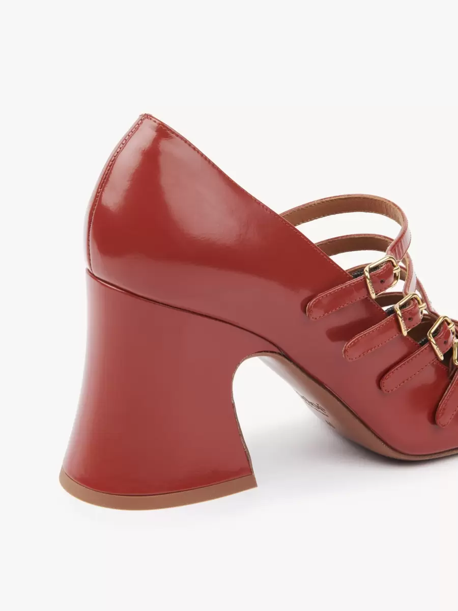 Crafted from shiny calfskin, these Janis pumps are set on a flared block heel. A subtle square toe shape combines with multiple adjustable straps signed by gold-tone buckles engraved with the Chloé logo.