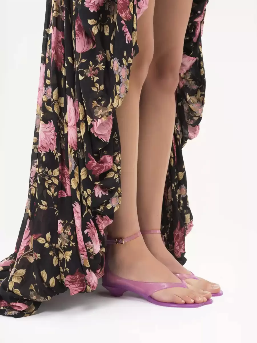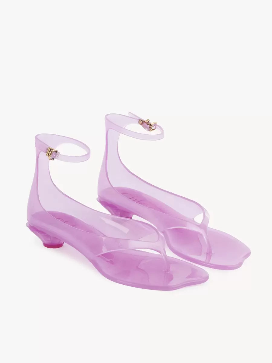 Crafted from transparent TPU, the Chloé Jelly sandals combine a thong front with a distinctive wavy sole and a shell-shaped heel.