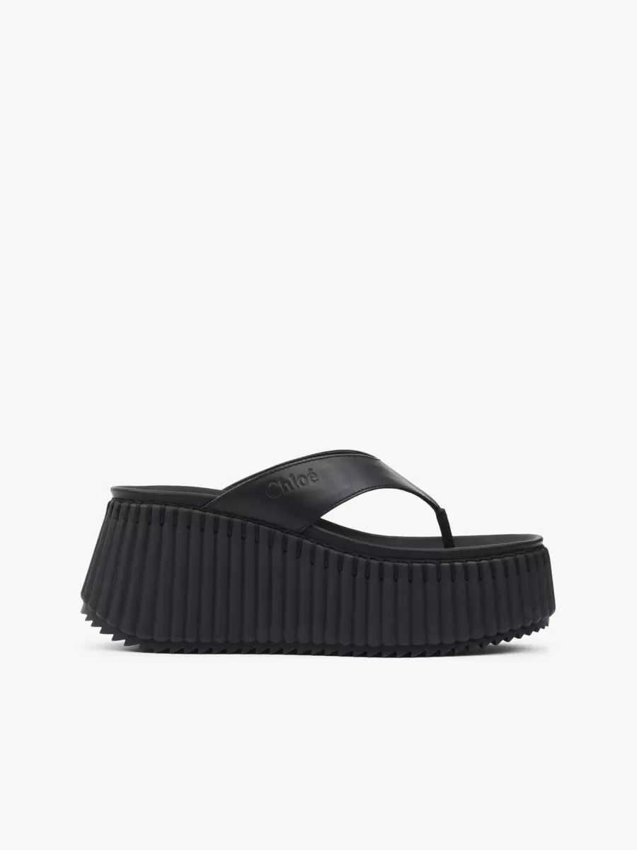 Crafted from calfskin, these Nama wedge slides feature a thong front debossed with the Chloé logo. They are set on an iconic, lightweight and ultra-comfortable recycled platform, finished with immaculate tonal blanket stitching which takes 4.5 hours to complete by hand.