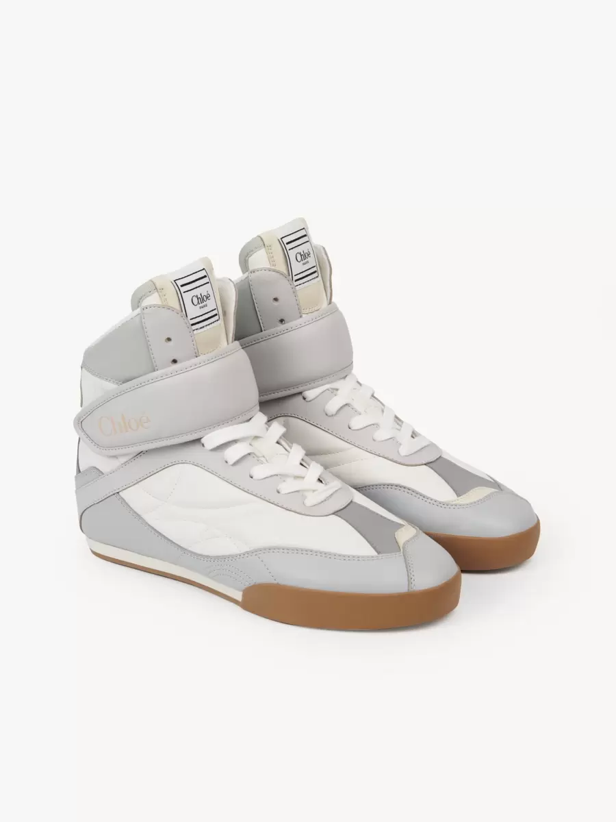 Inspired by the ballet and boxing worlds, these Chloé Kick high-top sneakers are crafted from calfskin. The slim silhouette pairs an almond toe with a high ankle secured by a wide leather strap debossed with the Chloé logo.