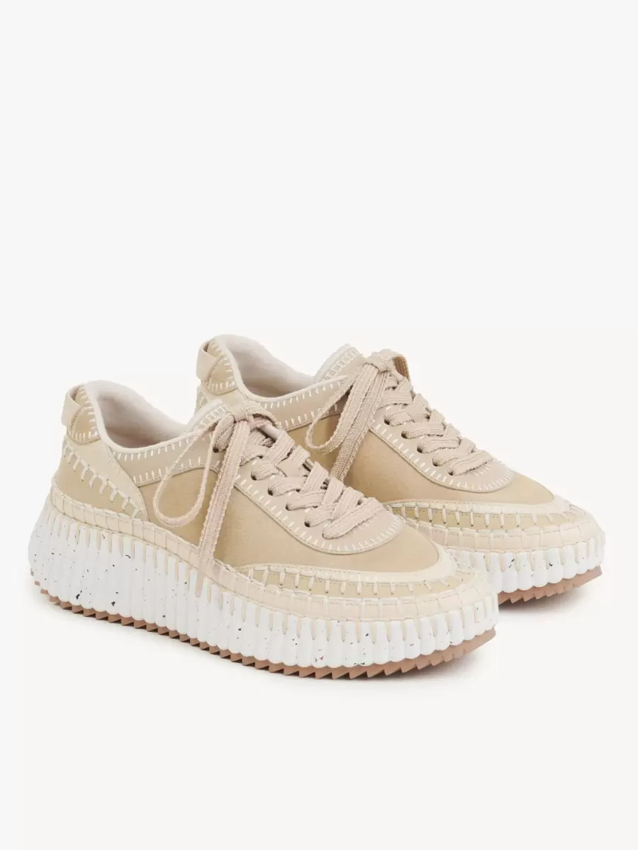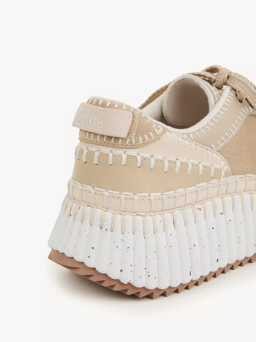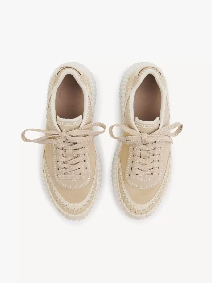 Chloé’s iconic Nama sneakers are crafted from a mix of smooth and suede cowhide and lower-impact materials, finished with the line’s signature hand-stitching.