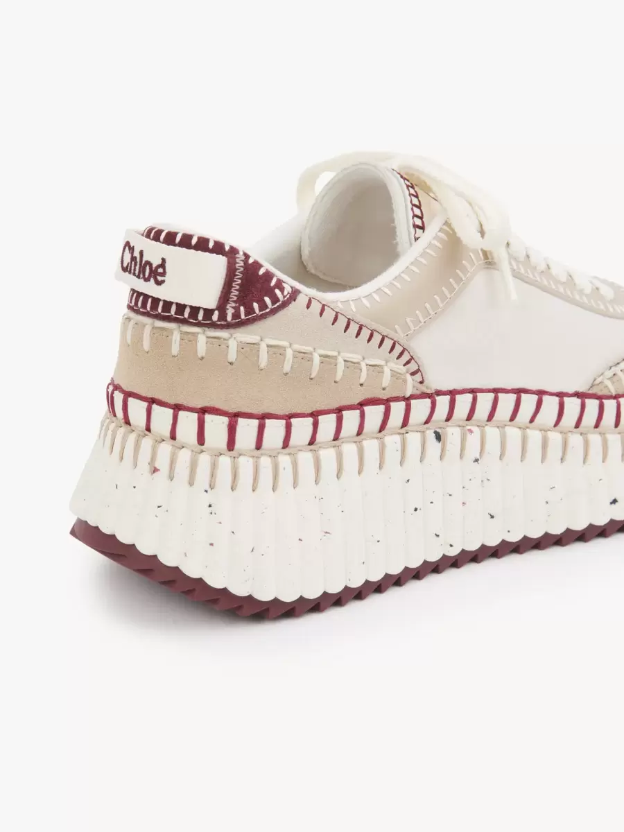 Crafted from a mix of smooth and suede cowhide, these Nama sneakers are set on an iconic, lightweight and ultra-comfortable recycled sole with a speckled effect. They are finished with immaculate blanket stitching which takes 4.5 hours to complete by hand. Chloé logo embroidery signs the back and tongue.