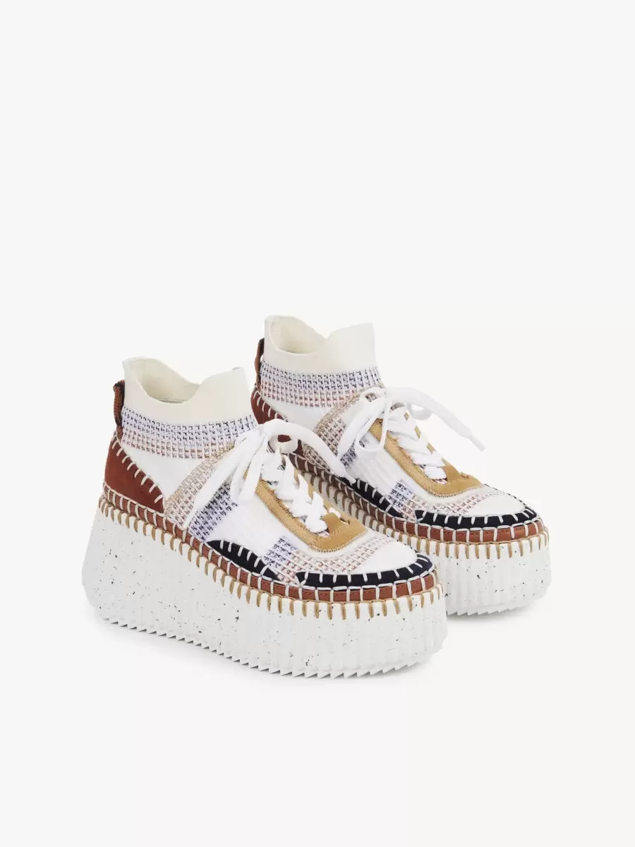 The exaggerated ribbed wedge structure is matched with a hand-stitched upper, showcasing authentic Chloé craftsmanship with a sporty twist. An embossed Chloé logo at the back adds a signature touch.
