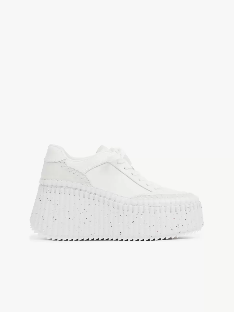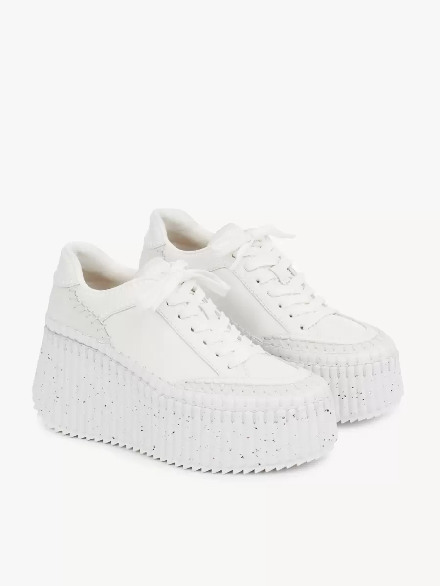 Showcasing a bold wedge silhouette, these eco-designed Nama sneakers are crafted from a refined mix of cowhide, elevating the line’s sporty aesthetic with subtle textural interplay.
