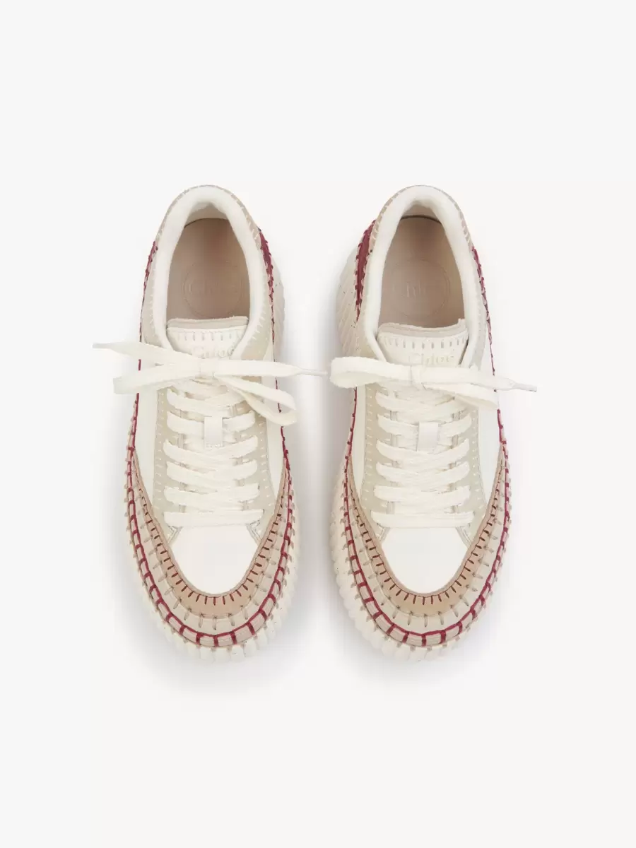 Crafted from smooth and suede cowhide, these Nama wedge sneakers are set on an iconic, lightweight and ultra-comfortable recycled sole with a speckled effect. They are finished with immaculate blanket stitching which takes 4.5 hours to complete by hand. An embroidered Chloé logo signs the tongue while a debossed logo finishes the back.